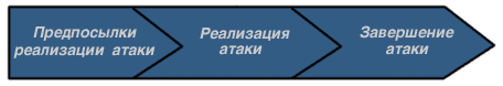 Анатомия атаки Рассмотрим этапы осуществления атаки (рис.2.). Первый, подготовительный, этап заключается в поиске предпосылок для осуществления той или иной атаки. На этом этапе ищутся уязвимости, использование которых приводит к реализации атаки, т.е. ко второму этапу. На третьем этапе завершается атака, "заметаются" следы и т.д. При этом первый и третий этапы сами по себе могут являться атаками. Например, поиск нарушителем уязвимостей при помощи сканеров безопасности, например, nmap или SATAN считается атакой.
