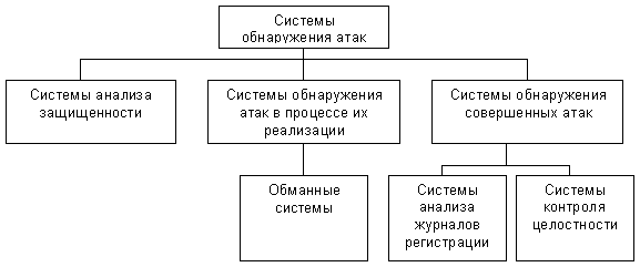 - Системы, функционирующие на втором этапе осуществления атаки и позволяющие обнаружить атаки в процессе их реализации, т.е. в режиме реального (или близкого к реальному) времени. Именно эти средства и принято считать системами обнаружения атак в классическом понимании. Помимо этого в последнее время выделяется новый класс средств обнаружения атак - обманные системы.