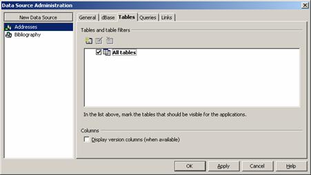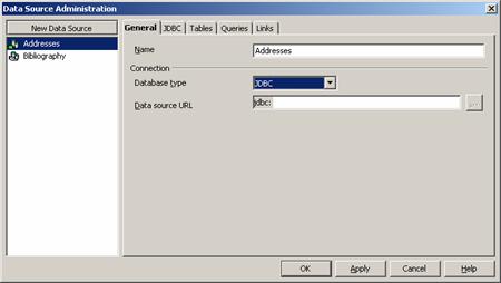 Как уже было сказано выше, в качестве источника может выступать адресная книга, экспортированная в базу данных StarOffice. При первой загрузке StarOffice программа запросит источник данных для адресной книги; в диалоге “Datasource” появится новый ресурс AddressBook. Впрочем, можно пропустить ввод данных адресной книги при первом старте и добавить этот источник данных позже. Для использования адресной книги выбираем её в исходных данных; а в появившемся диалоге следует указать источник.