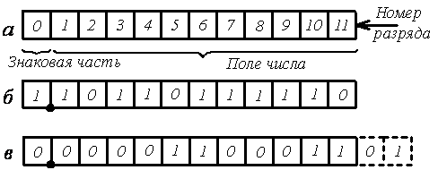 Представление чисел с фиксированной запятой (точкой). Естественная форма представления числа в цифровом автомате характеризуется тем, что положение его разрядов в автоматном изображении остается всегда постоянным независимо от величины самого числа. Существует также другое название этой формы записи чисел — представление чисел с фиксированной запятой (точкой).
