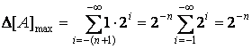 Усредненная абсолютная погрешность перевода чисел в двоичную систему счисления Δ[A] = (0 + 2-n)/2 = 0,5·2-n.