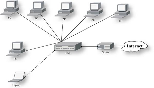 Системные блоки сотрудников и бухгалтера представляют собой типовую конфигурацию и полностью идентичны. К компьютеру бухгалтера подключен принтер, который является общим для всей сети. Сервер представляет собой мощный компьютер с выходом в интернет по технологии ADSL. Все компьютеры предприятия работают под управлением ОС Windows. Набор ПО на компьютерах бухгалтера и сотрудников также идентичен.
