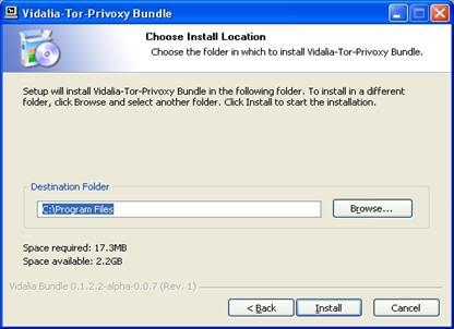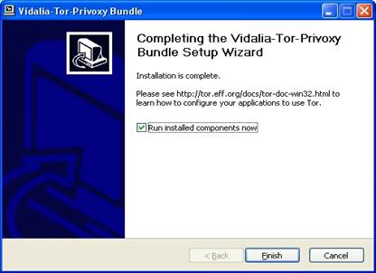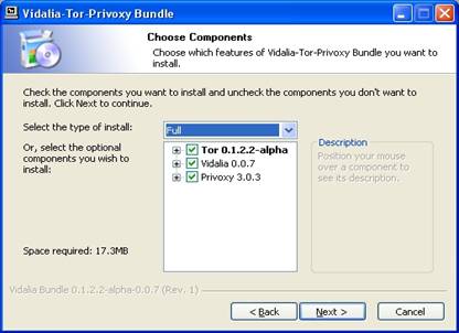 Мастер установки ПО Tor сообщает, что вместе с Tor будут установлены программы Privoxy и Vidalia. Установка всего пакета программ не обязательна – мастер позволяет установить только те программы, которые необходимы.