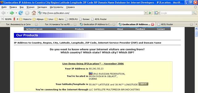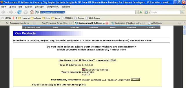 В сети интернет существует ряд сервисов, позволяющих посмотреть, какую информацию о клиенте получают сервера при предоставлении услуг. Один из таких сервисов - http://www.ip2location.com/