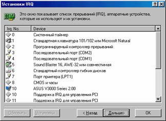Утилита показывает список запросов аппаратных прерываний (IRQ), их настройки и список оборудования, использующего их (Рис.54).