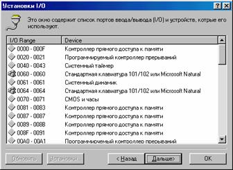 Утилита показывает список портов ввода/вывода (I/O), из настройки и устройства, использующие их (Рис.57).