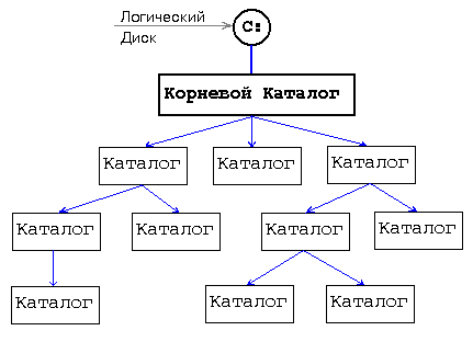 Каталог - это определенное место на диске (в области данных диска), где содержится информация о файлах и ПодКаталогах, "привязанных" к данному Каталогу. MS-DOS поддерживает иерархическую структуру каталогов (древообразную).