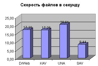 | Наименование антивируса | Скорость тестирования (файлов в секунду) | Всего проверено файлов | Затраченное время, секунд |
