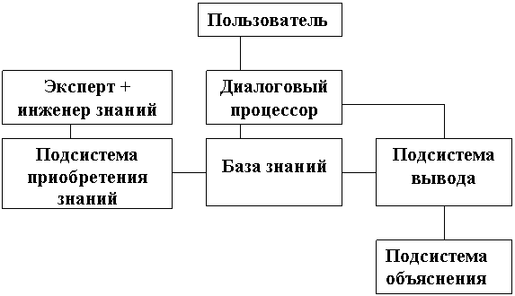 Экспертные системы имеют две категории пользователей и два отдельных “входа”, соответствующих различным целям взаимодействия пользователей с ЭС:
