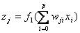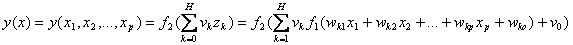 wji – весовые коэффициенты между входным и скрытым слоями, i = 0,1,…,p , j = 1,…,H;