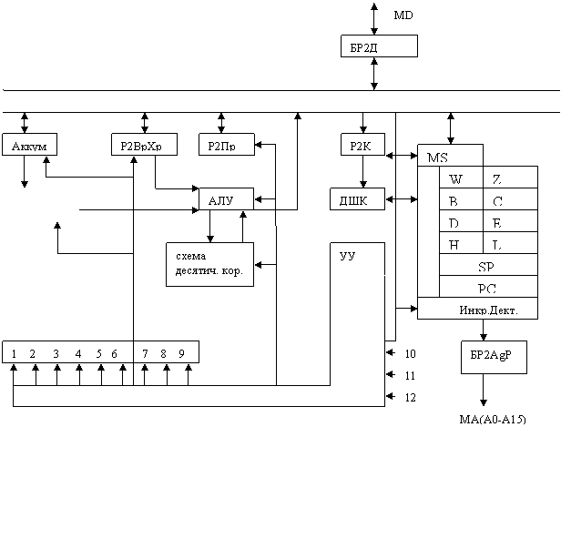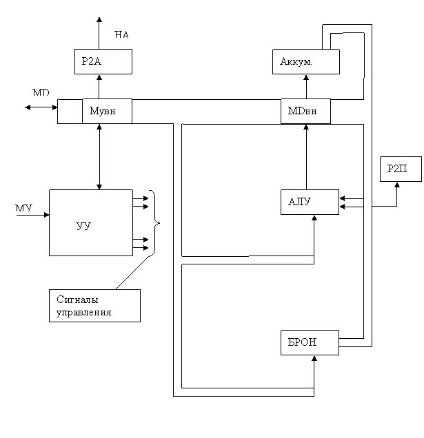 МДвн – магистр данных внут. связывающие все блоки в единое целое.