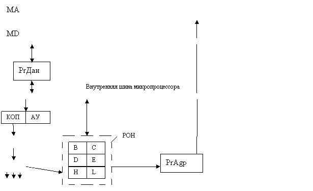 ОЗУ → MD → РгДан → Внутр.магистр