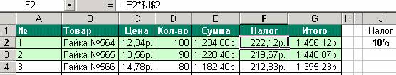 Например, в таблице товаров вычислить налог, значение которого может меняться см. рис.