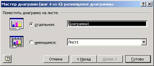 На последнем шаге выберите размещение диаграммы (на отдельном листе или на имеющемся, радом с таблицей) нажмите Готово