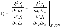 - матрица Гессе от функции fi (x), вычисленная в точке X(k).