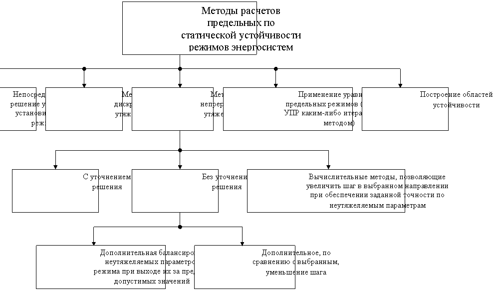 На основе рассмотренного в данной работе материала существующие методы расчетов предельных по статической устойчивости режимов энергосистем можно отразить схематично на рис. 5.