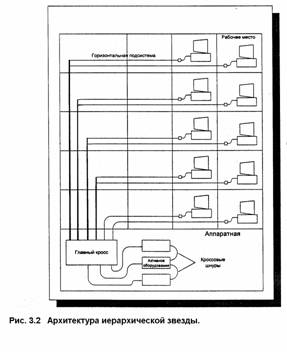 Традиционная архитектура иерархической звезды разработана для обеспечения максимальной гибкости. Кроссовое оборудование устанавливается в главной аппаратной.