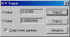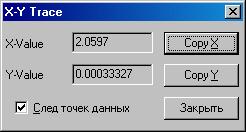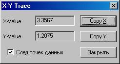 · Расположить указатель мыши на кривой. Нажать левую кнопку и, не отпуская ее, перемещать указатель вдоль кривой. В диалоговом окне X-YTrace будут определяться координаты положения указателя на кривой (см. рис. 1.2).