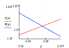 рис. 2.1 Графики функций f(y) и F(y) в одних координатных осях