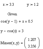 2. Решить систему нелинейных уравнений с помощью Given и find() или Given и minerr().