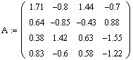 Записываем матрицу А, которая будет состоять из коэффициентов стоящих перед неизвестными х1, х2, х3, x4: