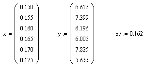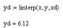 · xd – значение переменной x, в которой нужно проинтерполировать величину y. Предполагается, что х лежит в интервале изменения элементов vx.