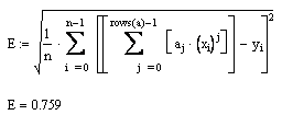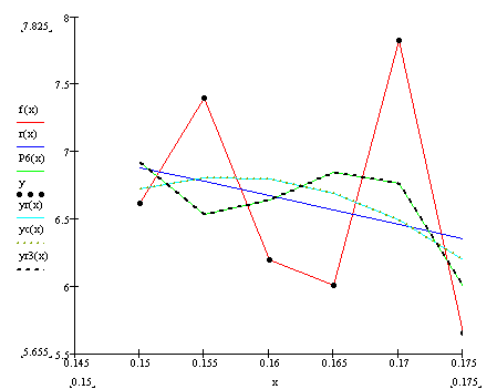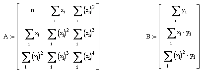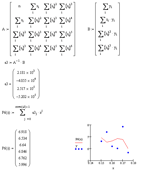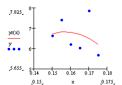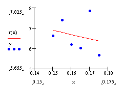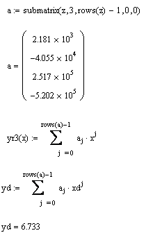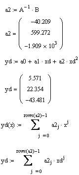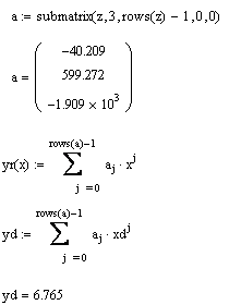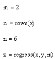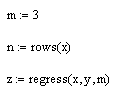 Функция regress(vx, vy, m) – вектор, требующий interp для нахождения полинома порядка m, наилучшим образом приближающего данные из vx и vy.