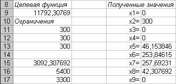После выполнения макроса «Поиск решения» мы получаем следующие значения: