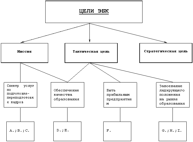4. Предусмотреть выработку системы целей ЭБК, включая их количественную и качественную формулировки, и последующий анализ организационной структуры, с точки зрения их соответствия системе целей;