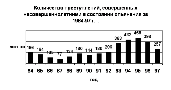 Статистические данные за 1998 год свидетельствуют об увеличении числа преступлений, совершенных несовершеннолетними. В основном, это произошло за счет увеличения краж личного имущества, почти в 2 раза увеличилось число разбойных нападений за рассматриваемый период.