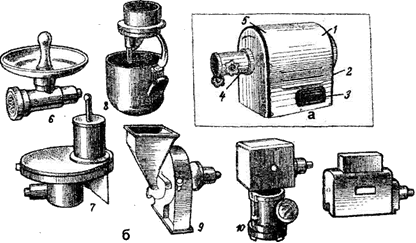 б - сменные механизмы: 6 - мясорубка МС2-70; 7 - овощерезка MC 18- I 60;