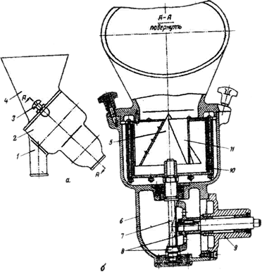 Через каждые 30-40 мин работы просеиватель выключают, снимают загрузочный бункер, вынимают сито и очищают его лег ким постукиванием о стол.