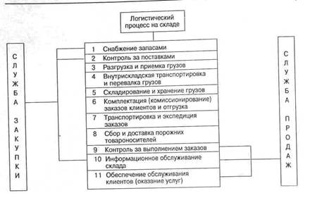 Логистический процесс на складе весьма сложен, поскольку требует полной согласованности функций снабжения запасами, переработки груза и физического распределения заказов. Практически логистика на складе охватывает все основные функциональные области, рассматриваемые на микро уровне. Поэтому логистический