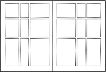 Печатное издание представляет собой «тетради или кодекса* преимущественно вертикально вытянутого формата». На каждой странице есть полоса набора, верхнее поле, нижнее поле, внешнее поле и корешковое поле. Таким образом, на развороте получаются два прямоугольника, окруженные полями. Для целостного восприятия их смещают немного к центру и вверх (рис. 2). Такой подход называется классическим. Однако, имеет место более современный подход, когда обе страницы повторяют друг друга.