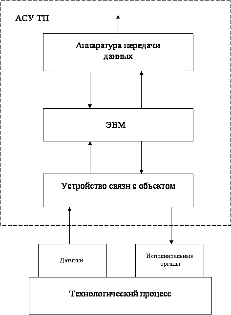 Рис. Типовая структура АСУ ТП на базе управляющей ЭВМ.