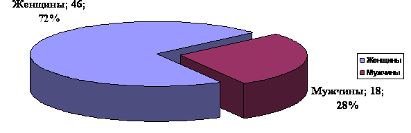 2. По гендерному признаку: мужчины (18 чел.); женщины (46 чел).
