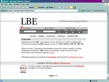 Lbe.ru – необычный баннерообмен: здесь Вам платят реальные деньги за показы баннеров на Вашем сайте. Комиссия от накопленных показов 30%. Статистика не особенно подробна, но вполне информативна. Требования к Вашим баннерам довольно просты: например они хоть и говорят, что не принимают баннеры с элементами ОС, но таковые нередко встречаются. Есть настройка рекламной компании – Вы исключаете сайты той тематики, на которых, по Вашему мнению, показы Ваших баннеров неуместны. В общем, система производит очень неплохое впечатление.