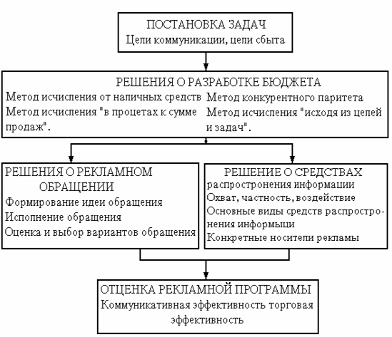 В процессе разработки программы рекламной деятельности руководству службой маркетинга необходимо принять пять принципиально важных решений. Они перечислены в схеме на рис. 1 .