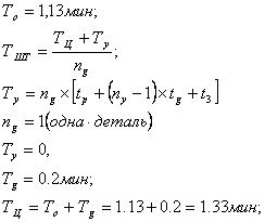Определяем штучное время на самом продолжительном технологическом переходе: