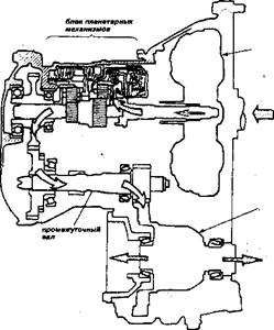 В промежуточном кожухе, между двигателем и коробкой передач, установлен гидротрансформатор, который выполняет функции обычного сцепления. В процессе работы этот узел, наполненный трансмиссионной жидкостью, несет довольно