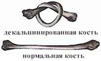 Можно удалить из кости и неорганические соединения - карбонат и фосфат кальция. Для этого кость выдерживают в течение суток в 10-процентном растворе НС1. Соли кальция постепенно растворяются, и кость становится настолько гибкой, что ее можно завязать в узел. Органические соединения придают кости гибкость и упругость.