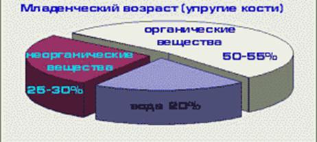 Изменение качественного состава кости от младенческого возраста к старости(данные приблизительны)