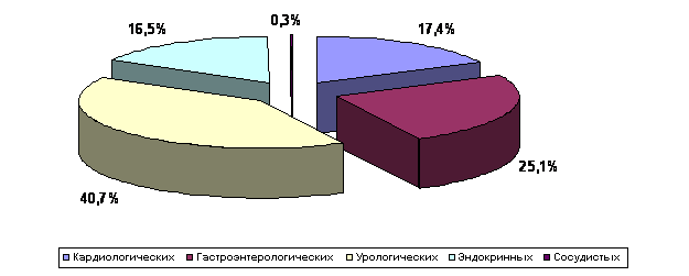 Выявляется ежегодно большое количество желчно-каменной болезни 183 случая. Впервые выявлено 6 аневризм сердца,19 гидронефрозов.