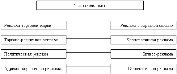 В большинстве известных источников выделяется до восьми типов рекламы, как это показано на рисунке 2.