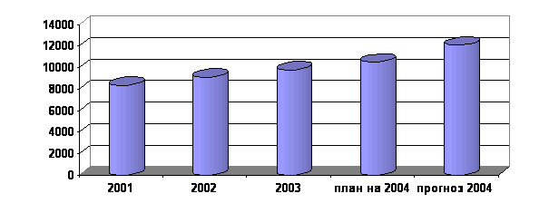 С учетом темпов роста, составляющих почти линейную зависимость доход в 2004 году планируется в размере 10,5 млн. рублей