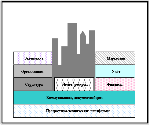 Бизнес-план является основным средством менеджмента. Для наглядности в схеме (рис. 1.) структура менеджмента представлена в виде семи основных блоков: маркетинг и бизнес-планирование, организация и логистика, учет управленческий и бухгалтерский, финансы, экономика, человеческие ресурсы, и двух вспомогательных: коммуникации и документооборот между разными блоками и программно-технические платформы, которые поддерживают их функционирование. Такая классификация предложена авторами книги «Семь нот менеджмента». [13].