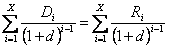 Срок окупаемости проекта, представляет собой расчетную дату, начиная с которой чистый дисконтированный доход принимает устойчивое положительное значение. Математически срок окупаемости находиться при решении экспоненциального уравнения расчета ЧДД с неизвестным периодом реализации (X), при этом значение ЧДД принимается равным 0, т.е. когда дисконтированный доход равен (покрыл) дисконтированные затраты: