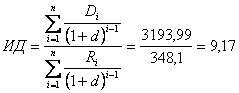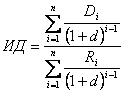 Индекс доходности – это отношение суммарного дисконтированного дохода к суммарным дисконтированным затратам: