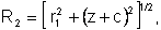 r - горизонтальная компонента расстояния от оси Z до точки В;