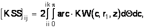 - источники расположены на боковой поверхности фундамента и точки наблюдения так же находятся на боковой поверхности. Для наглядности рассмотрим фундамент в вытрамбованном котловане (см. рис. 2.1) боковая поверхность которого разбита на j элементов (j=1,NE1) и имеются точки наблюдения i, находящиеся посредине граничных элементов. При вычислении коэффициента влияния входящего в матрицу [KSS]ij осуществляется интегрирование решения Миндлина по окружности находящейся на глубине с и радиусом arc и интегрирования полученных значений решения по высоте j-го элемента. Таким образом элементы подматрицы [KSS]ij определяются